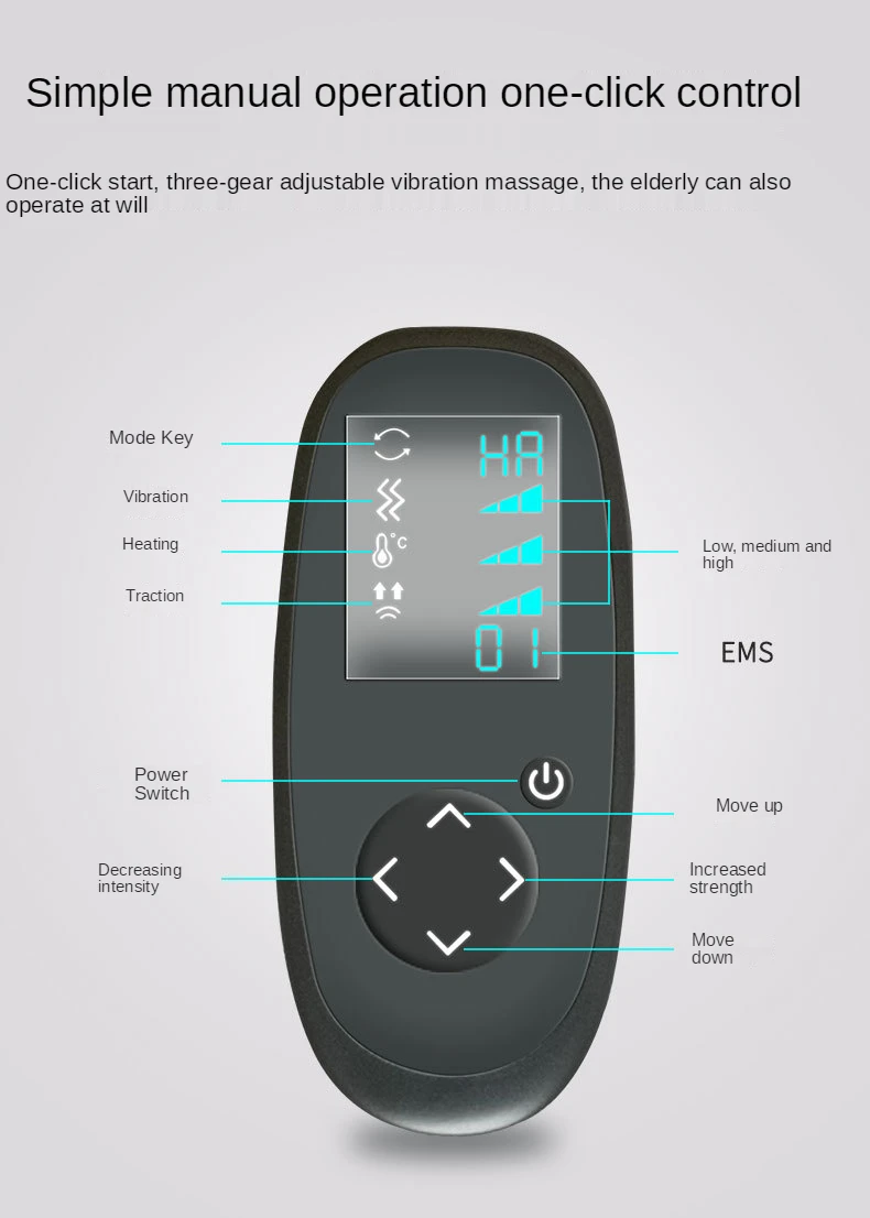 Back Pain Relief Device – EMS Pulse Massage & Lumbar Traction Support